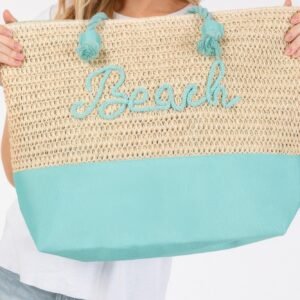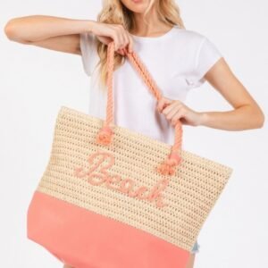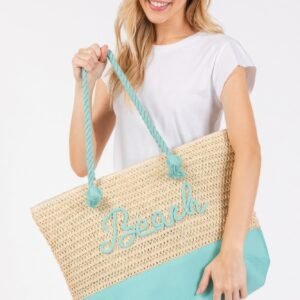 Color sewn rope beach letter and strap crochet fabric tote