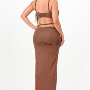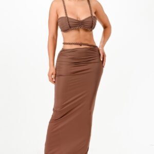 Turn heads with the striking silhouette of this cord top and skirt set, designed to make a bold yet elegant impression. The ruched, asymmetrical top features a bandage-inspired design that hugs the body and highlights your shape. Paired with a coordinating floor-length skirt, this set offers a sleek and sculpted look from top to bottom. Crafted from a soft, stretch-enhanced fabric, it moves with you while maintaining its form-fitting structure. Available in four captivating colors, it’s perfect for evening events, special occasions, or nights out. Product Details: Two-piece set includes ruched, asymmetrical top and matching skirt Bandage-style top offers a structured, body-hugging fit Floor-length skirt for a dramatic and elegant silhouette 95% Polyester, 5% Spandex for flexibility and comfort Available in four standout color options Ideal for special occasions, night outs, or formal gatherings