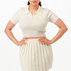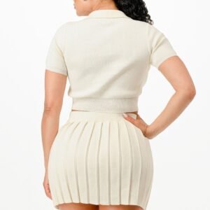 Polished and playful, this cropped polo sweater shirt and skirt set blends classic sport-inspired style with elevated comfort. The cropped polo top features glitter button accents and a structured collar, adding a hint of shine to its athletic edge. The matching skirt offers a flattering, easy fit with soft structure, making it ideal for both active and casual days. Crafted from a thick, high-quality sweater knit, this set is both cozy and breathable. Whether you’re headed to a tennis match, a pickleball game, or a casual outing, it’s a standout choice with effortless charm. Product Details: Two-piece set includes cropped polo sweater shirt and matching skirt Polo top with glitter buttons and structured collar detail Soft and thick sweater fabrication for warmth and comfort 95% Polyester, 5% Spandex for stretch and flexibility Great for tennis, pickleball, or sporty everyday looks Designed for casual styling with a touch of polish