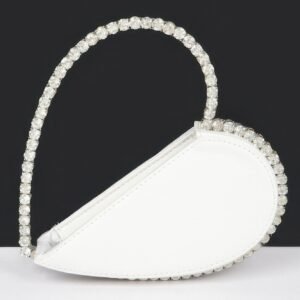 Elegant and distinctive, the Heart Shape Stone Handle Clutch adds a romantic sparkle to your evening style. Featuring a sculpted heart silhouette adorned with rhinestones and a jeweled top handle, it’s the perfect accent piece for special occasions or nights out.