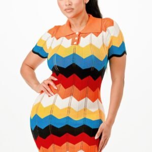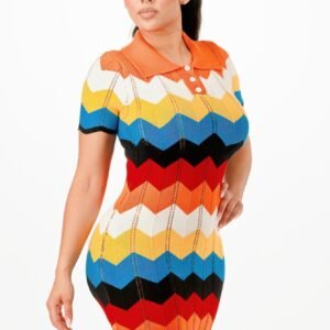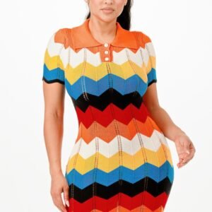 Playful and eye-catching, this knit mini dress is designed to brighten your wardrobe with its bold multicolor pattern and flattering silhouette. Featuring a fitted shape and button-front detail, it combines texture and charm in a modern mini length. The soft knit fabric offers stretch and comfort, making it perfect for day-to-night styling. Available in two vibrant color options, this dress is ideal for casual outings, weekend plans, or vacation looks that call for something fun and fresh. Product Details: Knit mini dress with multicolor design Button-front detail adds a playful touch Fitted silhouette flatters and hugs the body 95% Polyester, 5% Spandex for softness and stretch Available in two bold color options Ideal for casual wear, day plans, or vacation styling