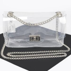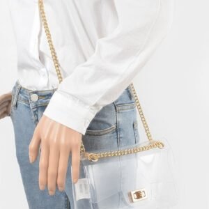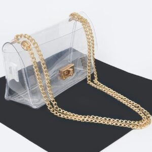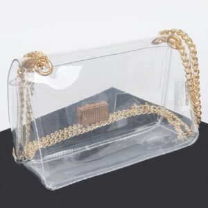 The combination of transparent PVC and metallic accents makes this bag a unique and fashionable choice. Its sleek design and versatile styling options ensure it complements a wide variety of outfits.