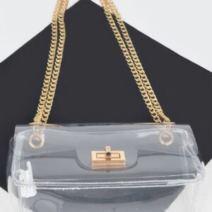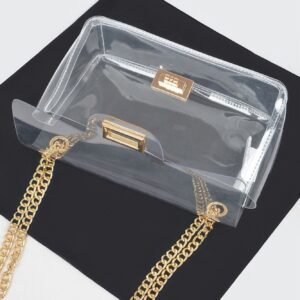 “Absolutely love the clear design and the gold flap! It’s such a chic addition to my wardrobe.” – Sophie T.