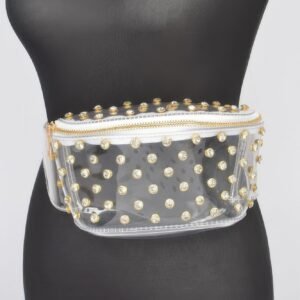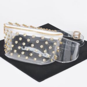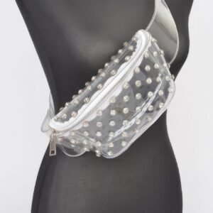 Turn heads with the Transparent Rhinestone Studded Fanny Pack—a bold blend of glam and utility. Crafted from clear PVC and accented with shimmering rhinestone studs, this standout accessory delivers edgy style with a modern twist. Measuring 8.5 inches wide, 5 inches high, and 2.5 inches deep, it offers just the right amount of space for your essentials. The adjustable strap provides flexible styling options, allowing you to wear it around your waist or as a crossbody. Perfect for music festivals, concerts, or any occasion where fashion meets function.