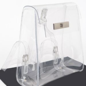 The Trend Clear Backpack is a modern must-have with its transparent body and structured design. Crafted from PVC with metallic accents, it offers a fresh and practical take on everyday accessories while maintaining sleek, on-trend style.